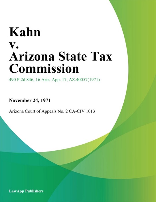 (DOWNLOAD) "Kahn v. Arizona State Tax Commission" by Arizona Court of Appeals # Book PDF Kindle ePub Free
